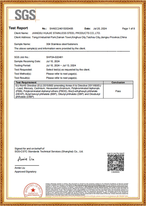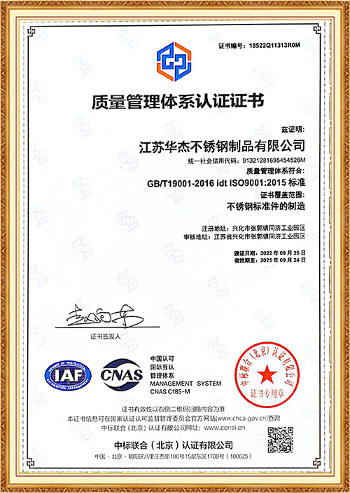 Som en sertifisert produsent under ISO 9001/14001/18001-styringssystemene, sikrer Jiangsu Huajie at hvert produkt – fra valg av råmateriale til sluttinspeksjon – oppfyller de høyeste kvalitetsstandardene. Vårt avanserte testutstyr inkluderer strekktestere, hardhetstestere, saltspraykorrosjonskamre og mer, noe som gjør oss i stand til å verifisere både mekanisk og miljømessig ytelse.