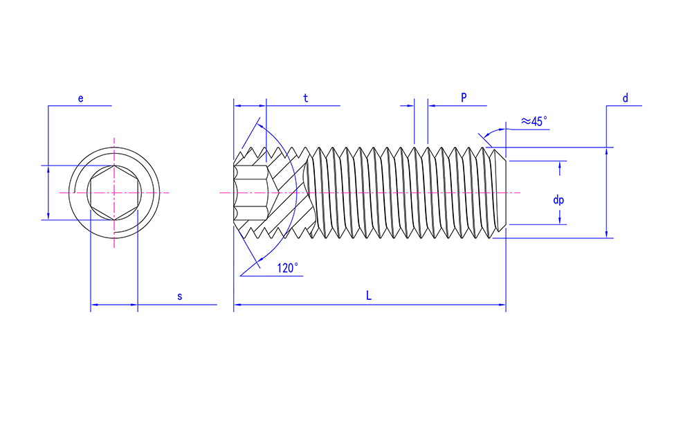 DIN 913 rustfritt stål sekskantskruer med flat spiss