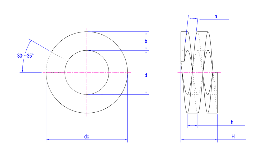 | Hodefunksjoner | Fjærlignende struktur, vanligvis rund eller korrugert design, metall, med elastisk funksjon. |